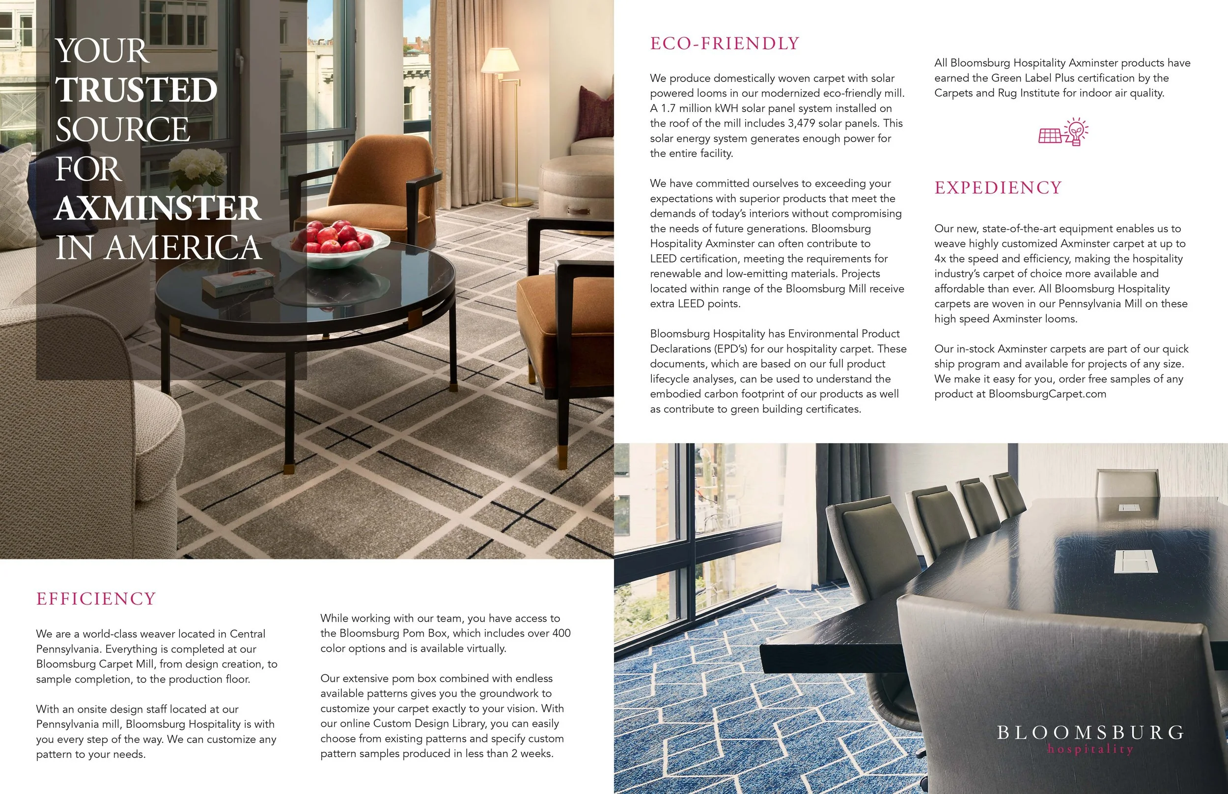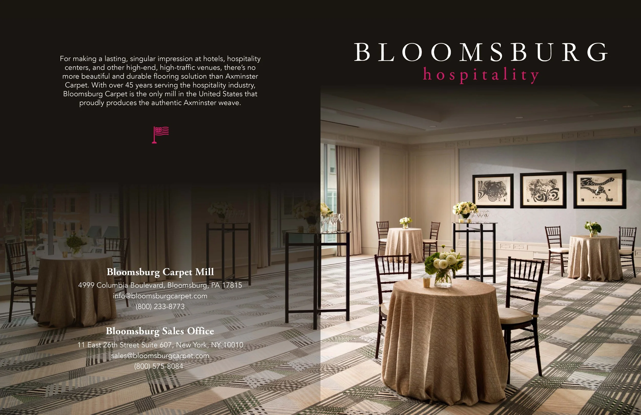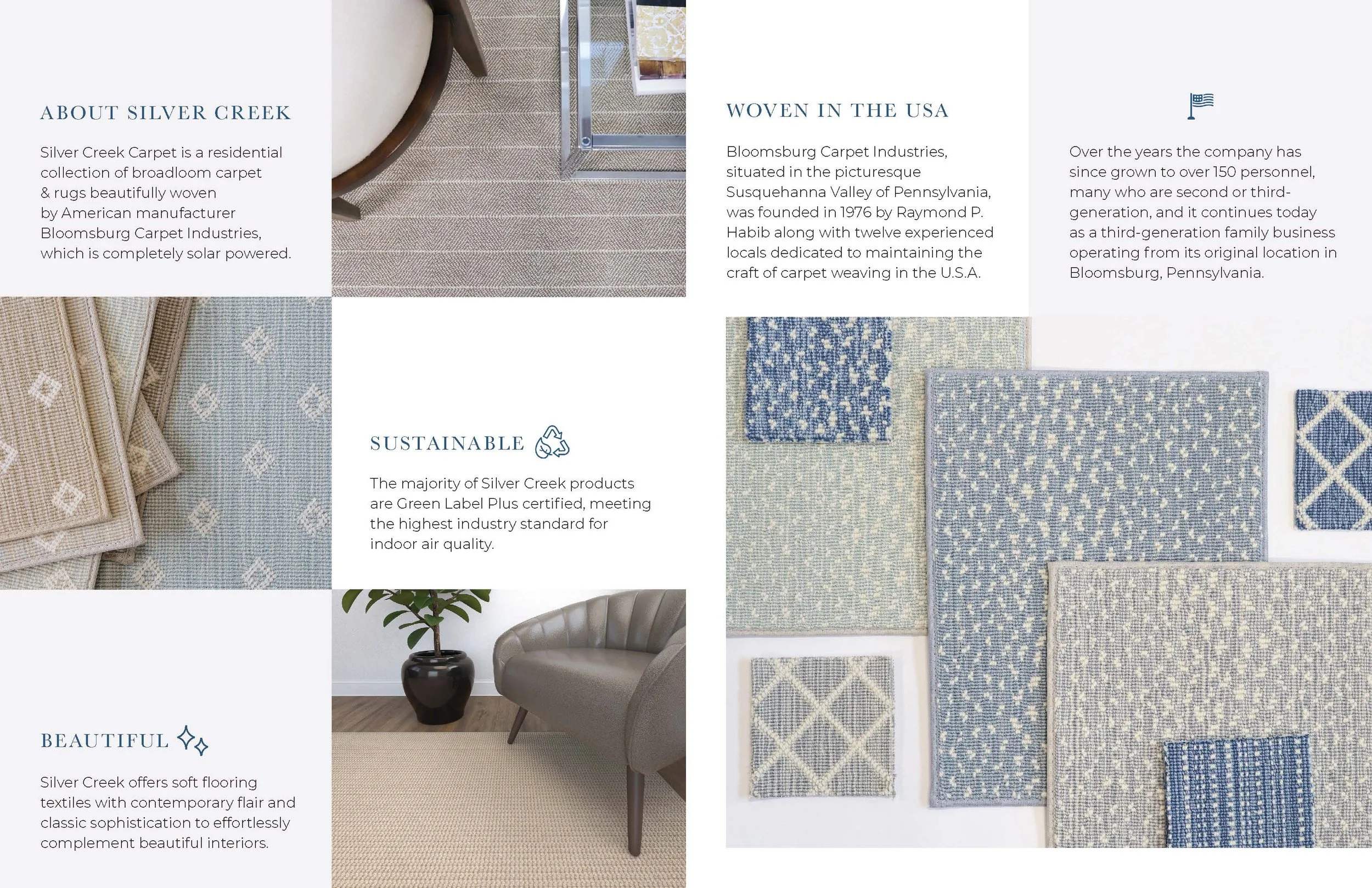 mARKETING BROCHURES SILVER CREEK back/front left/right TUVA BLOOMSBURG back/front left/right BLOOMSBURG HOSPITALITY back/front left/right WOVEN IN THE USA back/front left/right return return